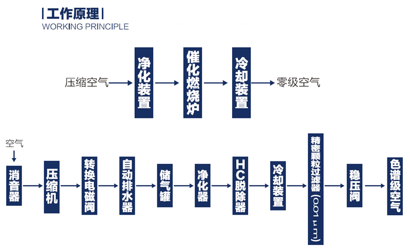 ◎ 零級空氣發生器為GC-FID、FPD、NPD等提供助燃氣,還可用于LC/MS中的噴霧氣和輔助氣,總碳分析儀中的助燃氣。